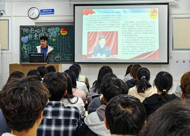 伴随着响亮的团歌声,主题团课活动拉开序幕。首先,同学们对于心理健康进行探讨和分享,并针对如何解决心理健康问题进行了专门板块的讲解。接着,团支书邀请同学进行主题演讲,让同学们对于如何加强心理健康教育发表自己的看法和见解。通过团课引导团员青年积极关注自身心理健康问题,提升心理自助能力与大学生心理健康素养。最后,团支书组织团员和青年观看《文明中国说》,使同学们深刻了解了豫剧的广泛影响力。