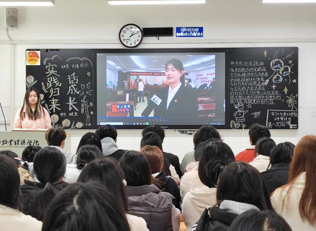 伴随嘹亮的团歌声,团课正式开始。首先由主讲人点明本次团课的重要性与主题方向,鼓励大家积极分享实践故事。随后,几位在寒假社会实践、志愿服务以及专业实习中有突出表现的同学代表依次上台发言。他们有的参与了乡村振兴调研,深入田间地头,与村民们促膝长谈,了解农村发展现状与需求;有的投身社区志愿服务,为孤寡老人送去温暖,组织社区文化活动;还有的在专业实习中,将课堂所学运用到实际工作场景。随后,同学们分成小组,围绕实践中遇到的困难、解决问题的方法以及收获的成长展开热烈交流。大家各抒己见,气氛活跃。有的小组探讨在实践中如何突破人际交往障碍,有的则交流如何在复杂的实践环境中保持坚定的信念。在交流中,大家发现,尽管实践领域不同,但都在挫折中收获了宝贵的经验。最后,同学们共同观看了一段关于优秀青年实践成果的视频,视频中展现了不同领域青年如何通过实践实现个人价值与社会价值的统一,进一步激发了同学们参与实践的热情。