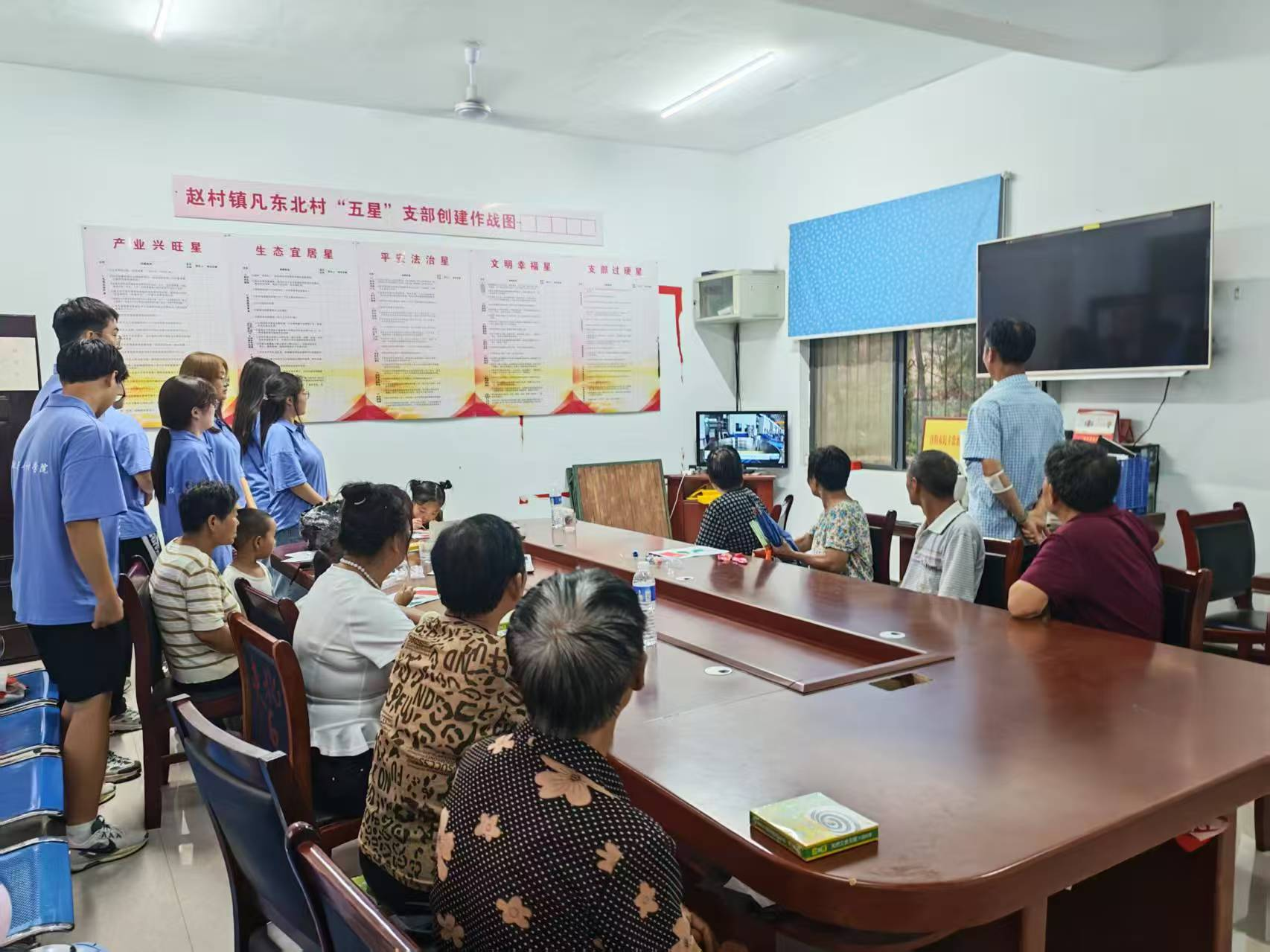 7月9日,williamhill英国中文“豫音传情,语暖乡途”志愿服务队在凡东北村村活动中心开展了以“推广普通话, 共筑中国梦"为主题的推普观影活动。团队成员们通过播放影视剧、互动教学等形式, 向村里的老人和孩子们普及普通话知识,传递语言文化的魅力。
