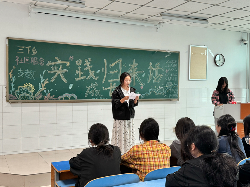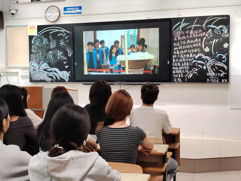 伴随着嘹亮的团歌声,团课活动正式开始。首先各班团支书组织全体团员青年学生进行实践感悟分享环节。同学们依次上台,结合自身暑假参与的社区服务、企业实习、乡村调研等实践活动,讲述实践中的所见所闻所感,分享遇到的困难、解决问题的方法以及从中获得的能力提升与思想转变。随后,各班团委根据本院暑假社会实践开展情况,分别邀请了优秀实践个人和团队代表举行实践专题报告会。代表们通过PPT 展示、视频播放等形式,详细介绍了优秀实践项目的背景、实施过程、创新点以及取得的成果,毫无保留地分享了项目推进中的成功经验与实用技巧,现场同学认真聆听并积极提问,互动氛围热烈。