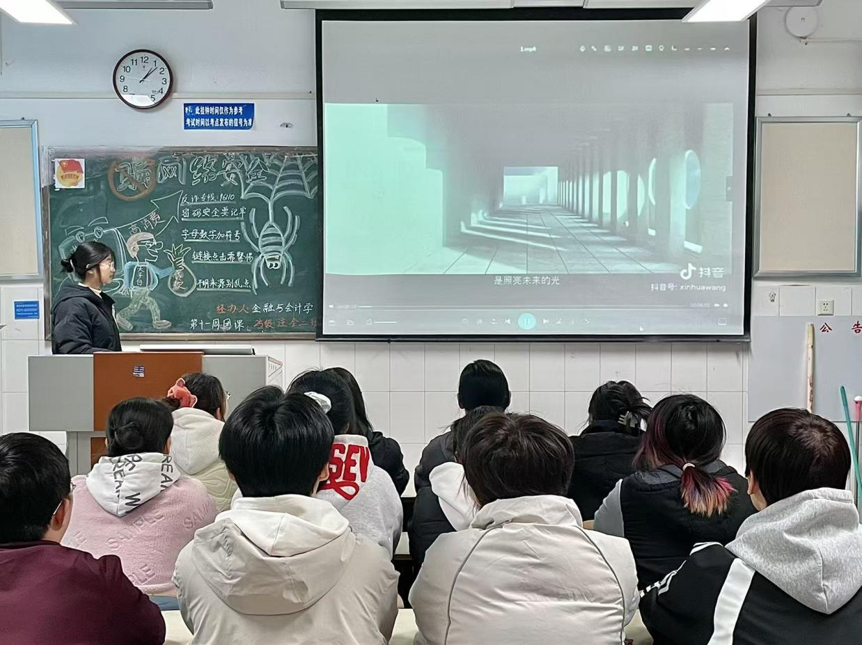 在嘹亮团歌声中,各班团课活动有序展开。活动伊始,各班团支书播放网络安全宣传视频,视频中的各类案例,引发同学们对网络安全问题的关注。接着,各班团支书带领团员青年深入学习习近平法治思想和关于网络强国的重要思想,明确了青年在维护网络安全、弘扬网络正能量的过程中应肩负的责任与使命。此外,各班团支书还结合案例讲解了网络诈骗、信息泄露等风险的防范要点。同学们围绕“不良信息辨别方法”“日常用网安全技巧”展开热烈讨论,现场气氛热烈,大家纷纷表示将从自身行为规范入手,主动抵御网络空间中的不良信息侵蚀,养成科学合理的用网习惯并带动身边人共同提升网络安全素养。