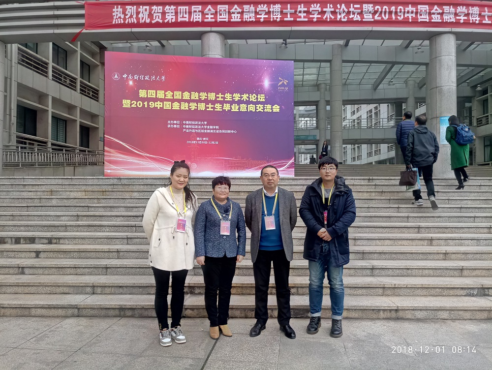 11月30日金融学院院长黄良杰教授、李琰教授、宋晓薇博士等一行4人前往武汉中南财经政法大学参加了为期两天的第四届全国金融学博士生学术论坛暨2019中国金融学博士生毕业意向交流会。