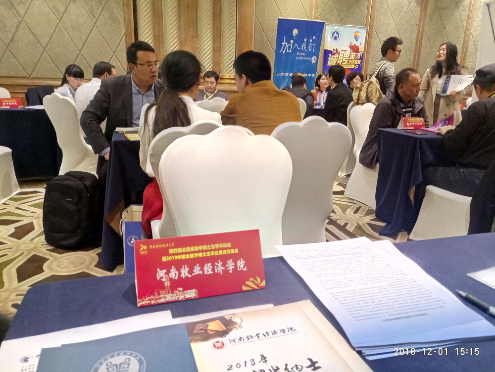 会后,包含我校在内的国内30多所高校在分会场举行了招聘会。我校设立咨询台与各大国内高校同场招聘,多位博士前往我校展台咨询,并留下简历。在同博士生的交流过程中,对应届金融学博士生的就业需求有了一定了解,也扩大了我校及金融学院的宣传。同时,清华大学、中国人民大学、复旦大学等八十余位博士生在分会场进行了论文汇报交流,各高校参会代表认真听取了汇报。