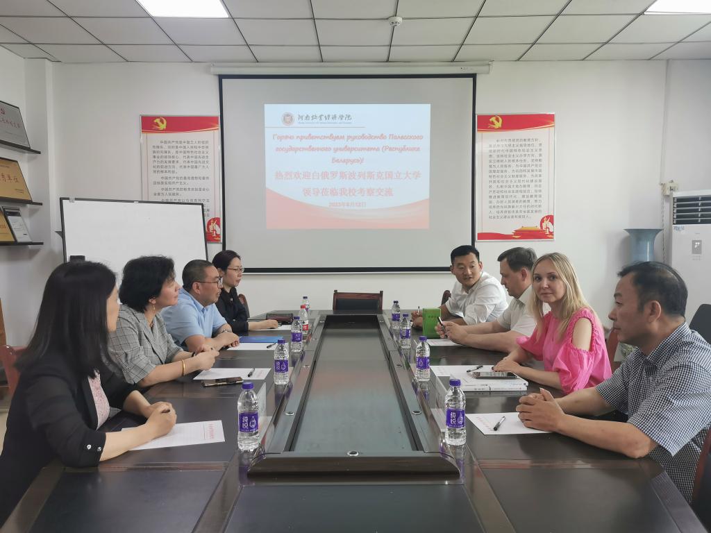 2023年6月12日,白俄罗斯共和国波列斯克国立大学校长杜奈·瓦列里·伊万诺维奇一行4人莅临我院考察交流,我院院长黄良杰、副院长王培玲、邵翠丽和崔海红出席了交流活动。