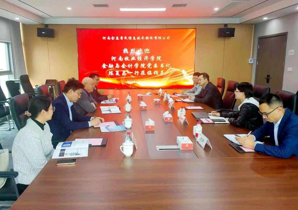 公司副总经理王凯对陈书记一行的到来表示热烈欢迎。运营部总经理贺亚男首先向大家介绍了公司的基本情况、资质荣誉、战略布局等,着重介绍了“普惠通”APP应用平台运营情况。接着,王凯详细介绍了智慧岛数字金融开放服务平台相关情况。随后,陈复昌书记详细介绍了学院办学思路、人才培养理念、学科建设、专业发展、教科研成果及毕业生就业等情况,并指出公司的主营业务、发展规划、市场价值等与学院专业建设及教学科研密切相关、高度契合,双方在人才培养、教科研等领域都具有很大的合作空间。陈书记表示,感谢公司对我校学生就业工作的大力支持,此次交流不仅能更加准确地掌握用人单位对学校毕业生的评价及要求,还能促进企业与学校精准对接,拓宽人才培养和学生就业等方面的合作路径。座谈交流中,公司副总经理王凯、运营部总经理贺亚男表达了与学校进一步加强合作交流、共同发展的愿望,双方还就目前可合作的详细内容进行了深入交流。