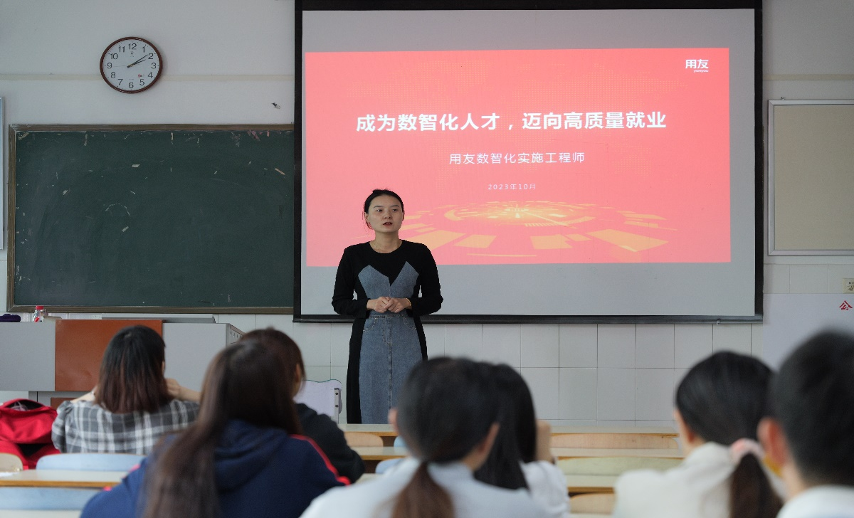 本次宣讲会上,金源股份HR首先详细地介绍了企业的发展状况、企业文化、招聘要求等。重点介绍了此次的招聘岗位——用友数智化实施工程师,该岗位主要是进行客户需求调研、方案设计、系统构建、培训等工作。随后,HR就当前就业市场环境、公司员工发展、薪酬待遇等话题与同学们进行深入探讨,并为同学们答疑解惑。宣讲结束后,毕业生积极投递简历,并当场进行了面试和交流。