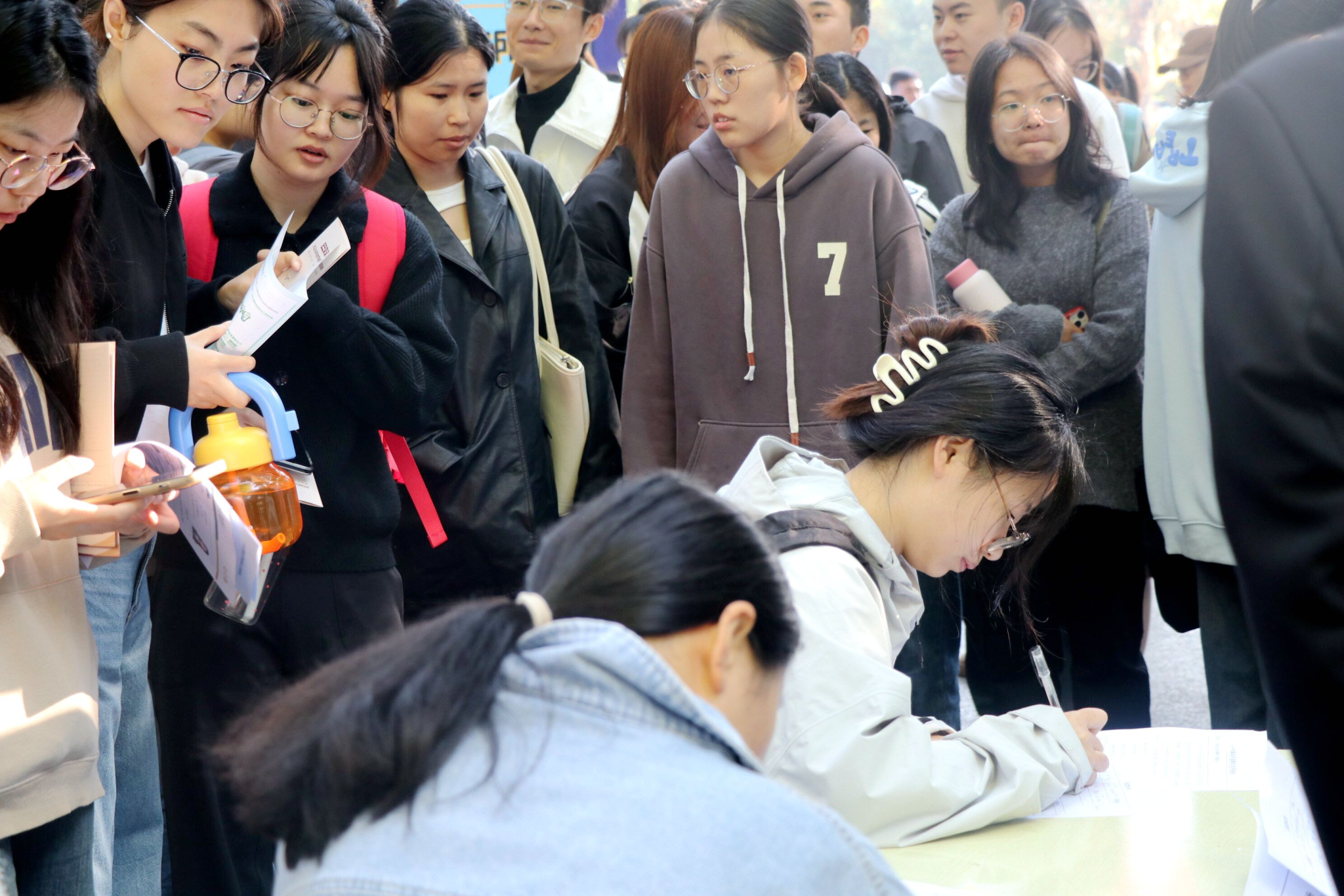 双选会现场求职学生络绎不绝,求职气氛浓厚,毕业生们手持精心准备的简历与企业招聘代表就岗位需求、发展空间、薪资待遇等问题积极沟通交流。此外,双选会还吸引了不少非毕业班学生前来现场观摩,提前感受就业氛围、了解行业需求和就业形势,为今后求职就业做准备。