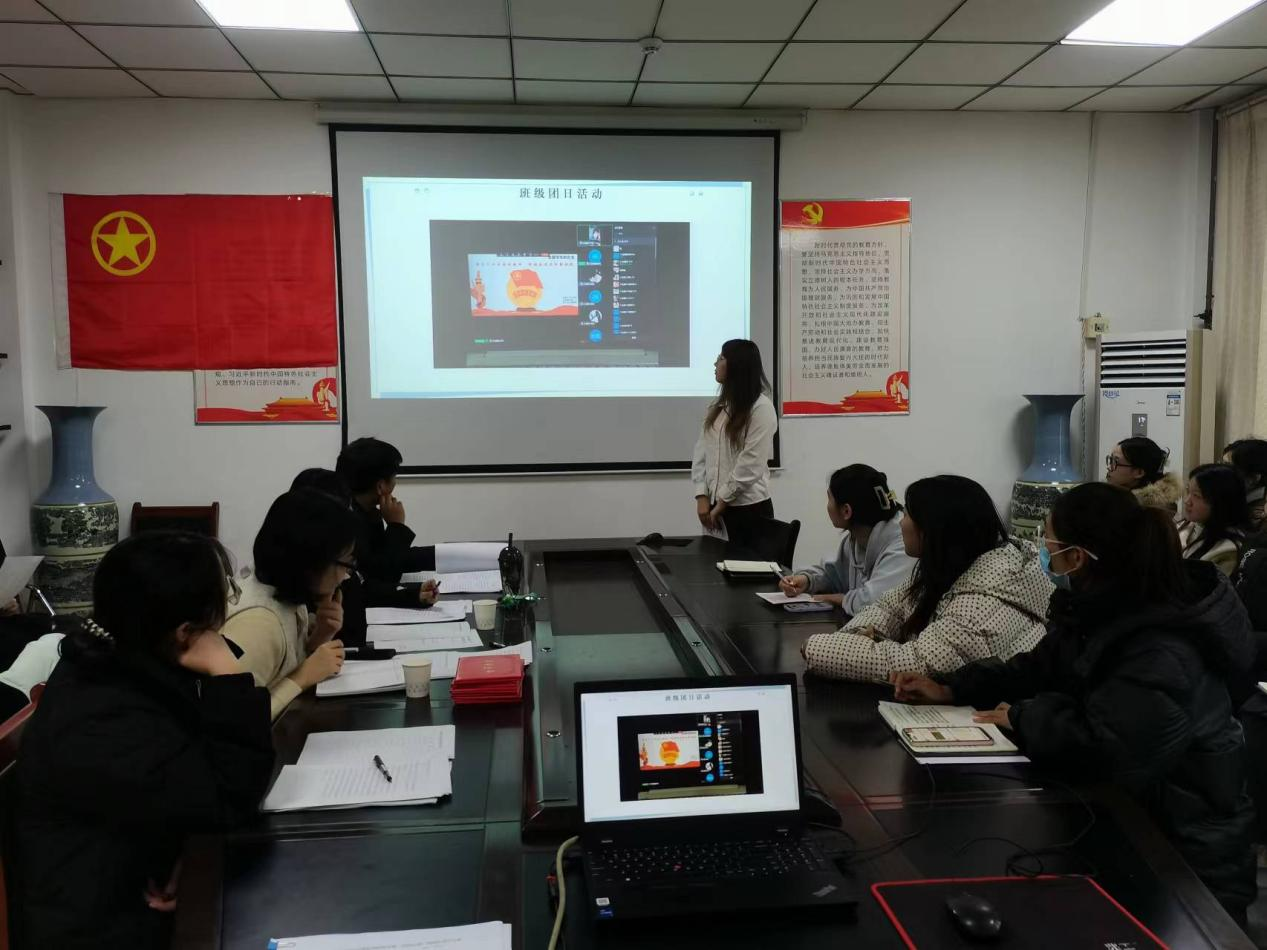 会议伊始,我院团委书记葛婉老师针对过去一年各团支部的工作进行讲话。葛婉老师结合实际情况,对各基层团支部的工作给予了肯定,同时也指出了存在的问题和不足之处,并对今后进一步推动学院共青团工作高质量发展提出要求:一是各支部应围绕团员和青年主题教育,不断加强理论学习,坚定理想信念;二要牢固树立大抓基层理念,坚持不懈加强基础建设,集思广益,组织内容新颖、形式多样的团日活动;三要以志愿服务和社会实践工作为抓手,明确自身定位,真正做到服务同学、服务社会,不断提升工作专业性、实效性。